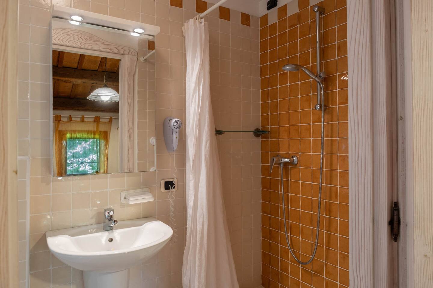 Al primo piano sono poste le quattro camere per gli ospiti dotate, ciascuna, del proprio bagno di servizio. Tutte le camere sono climatizzate e riscaldate.